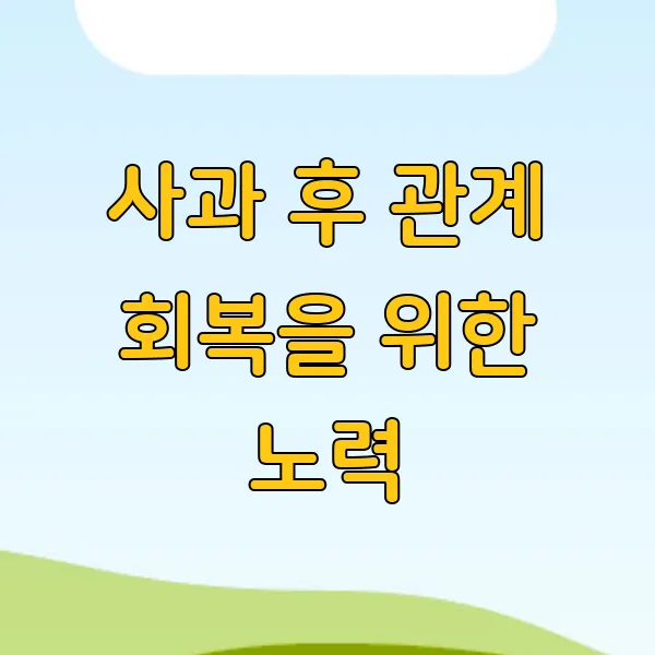 우선, 사과 후 상대방의 반응을 살펴보는 것이 중요합니다. 긍정적인 반응을 보인다면, 다행스럽게도 회복의 가능성이 높아진 것이겠죠! 하지만, 여전히 마음의 문을 닫고 있다면…? 조급해하지 마세요. 상대방에게는 감정을 추스르고 생각을 정리할 시간이 필요합니다. 마치 씨앗이 싹을 틔우기 위해 적절한 온도와 습도, 그리고 시간이 필요한 것처럼 말이죠. 상대방의 심리적 상태를 고려하며 관계 회복을 위한 노력을 기울여야 합니다. 심리학에서는 이를 '관계 회복 탄력성(Relational Resilience)'이라고 부르는데, 이는 갈등 이후 관계를 회복하고 강화하는 능력을 의미합니다. 관계 회복 탄력성은 공감 능력, 의사소통 능력, 그리고 자기 조절 능력 등 다양한 요인에 의해 영향을 받습니다. 마치 훌륭한 오케스트라 연주처럼, 여러 악기가 조화롭게 어우러져야 아름다운 음악이 탄생하는 것과 같습니다.